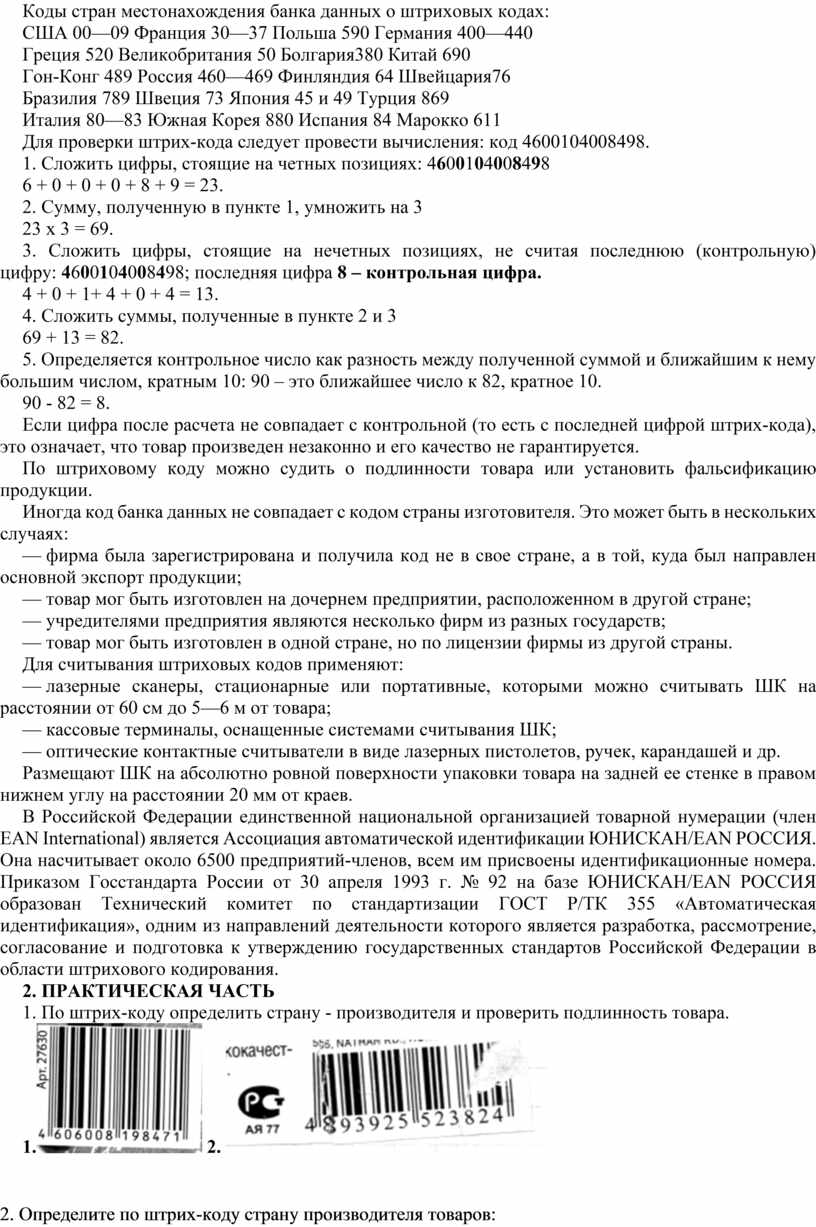 Цель работы: познакомится с понятием «штриховое кодирование» и научиться определять подлинность товара при помощи штрих-кода.