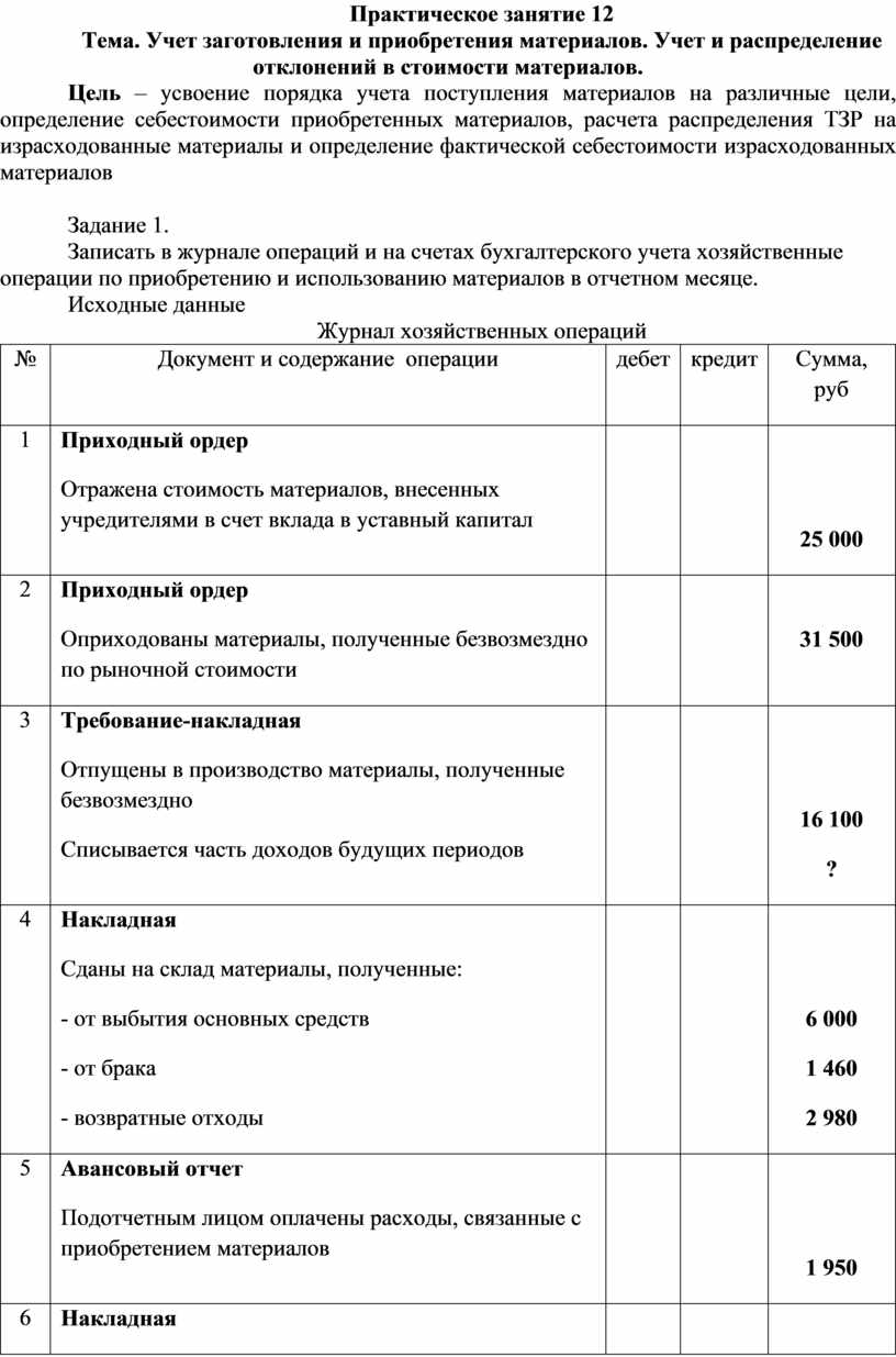 Тема. Учет заготовления и приобретения материалов. Учет и распределение отклонений в стоимости материалов.