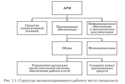 Автоматизированное рабочее место — это комплекс средств компьютерной техники и программного обеспечения, располагающийся непосредственно на рабочем месте сотрудника и предназначенный для автоматизации его работы в рамках осуществления профессиональной деятельности. Автоматизированные рабочие места должны создаваться в соответствии с их предполагаемым функциональным назначением. Общими принципами создания АРМ являются системность (система взаимосвязанных компонентов), гибкость (приспособление АРМ к своевременной модернизации), устойчивость (работоспособность системы должна быстро восстанавливаться, неполадки отдельных элементов — легко устраняться), эффективность (правильное распределение функций и нагрузки между работником и средствами автоматизации).