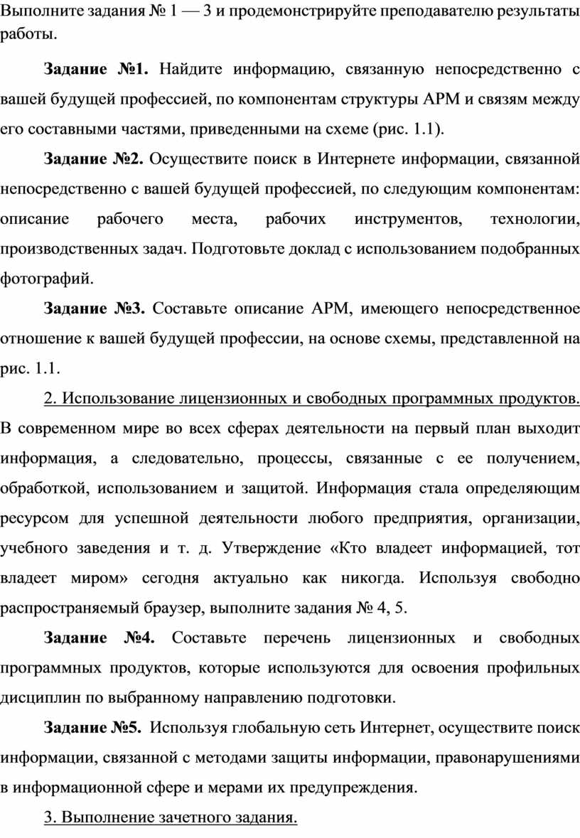 Задание №3. Составьте описание АРМ, имеющего непосредственное отношение к вашей будущей профессии, на основе схемы, представленной на рис. 1.1.