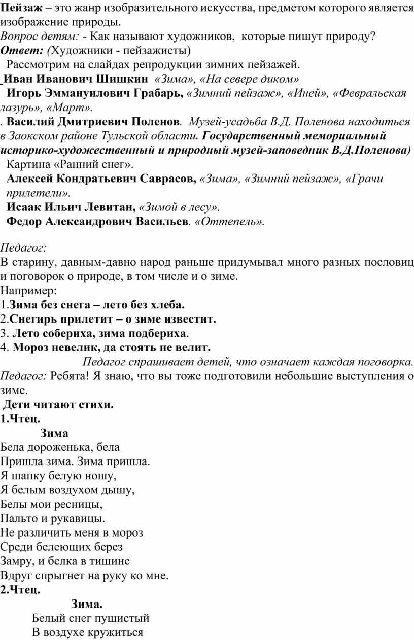 Педагог: - Кто может сказать, чему посвящено наше занятие (Зиме).