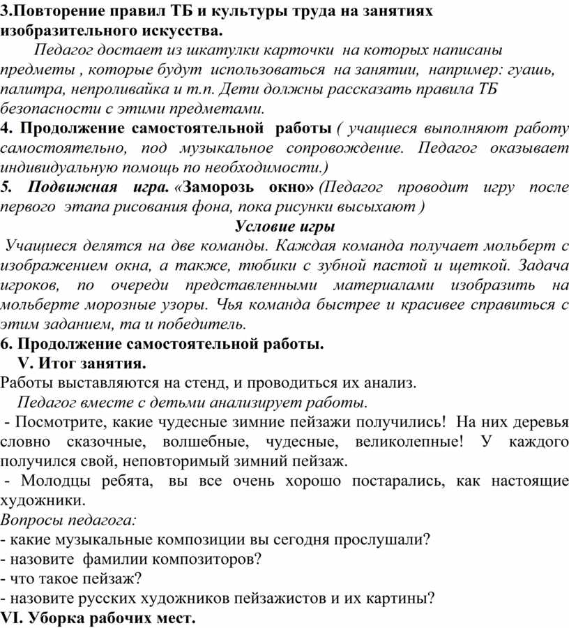 3.Повторение правил ТБ и культуры труда на занятиях изобразительного искусства.