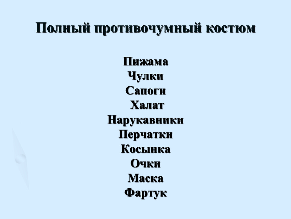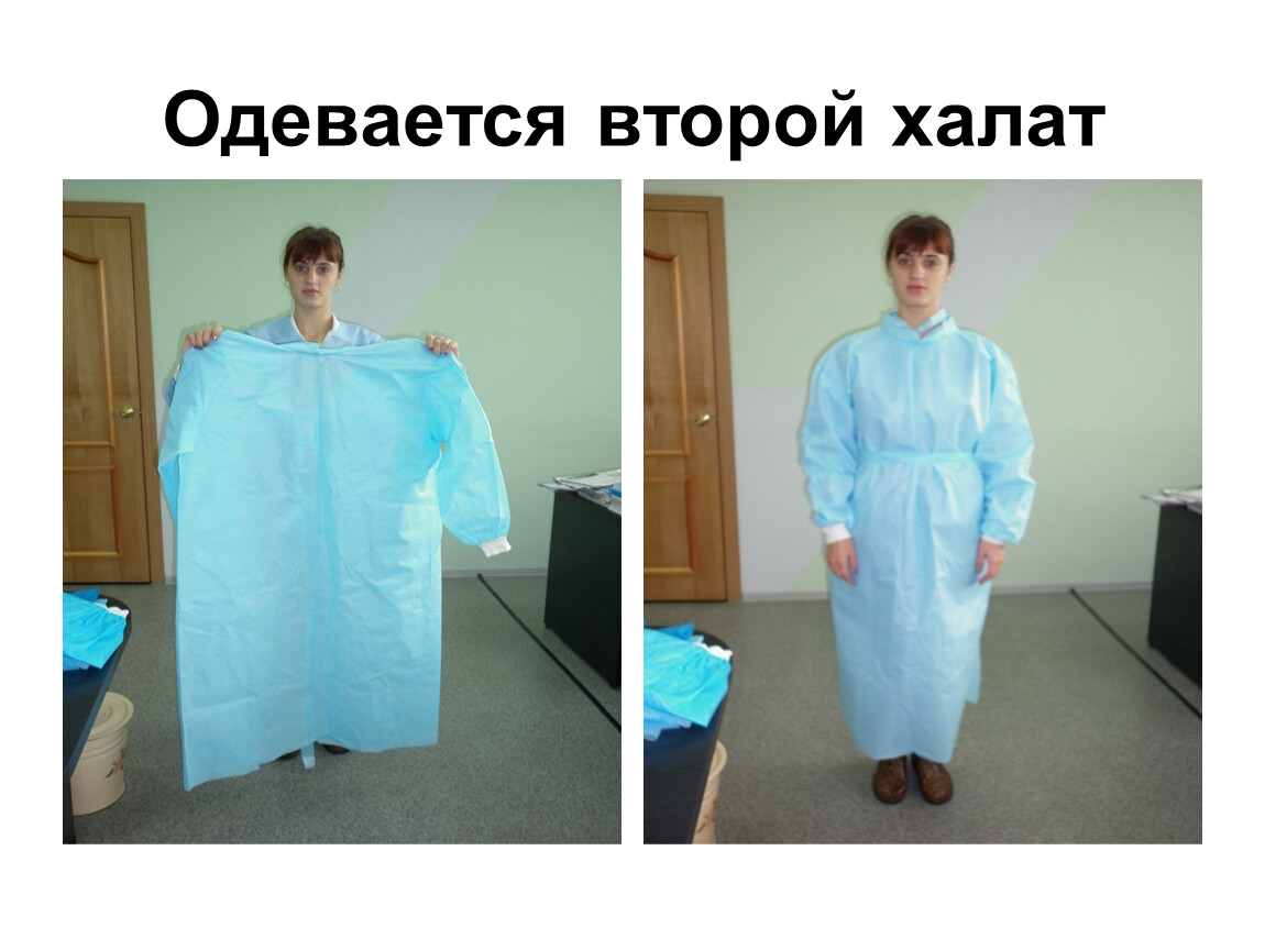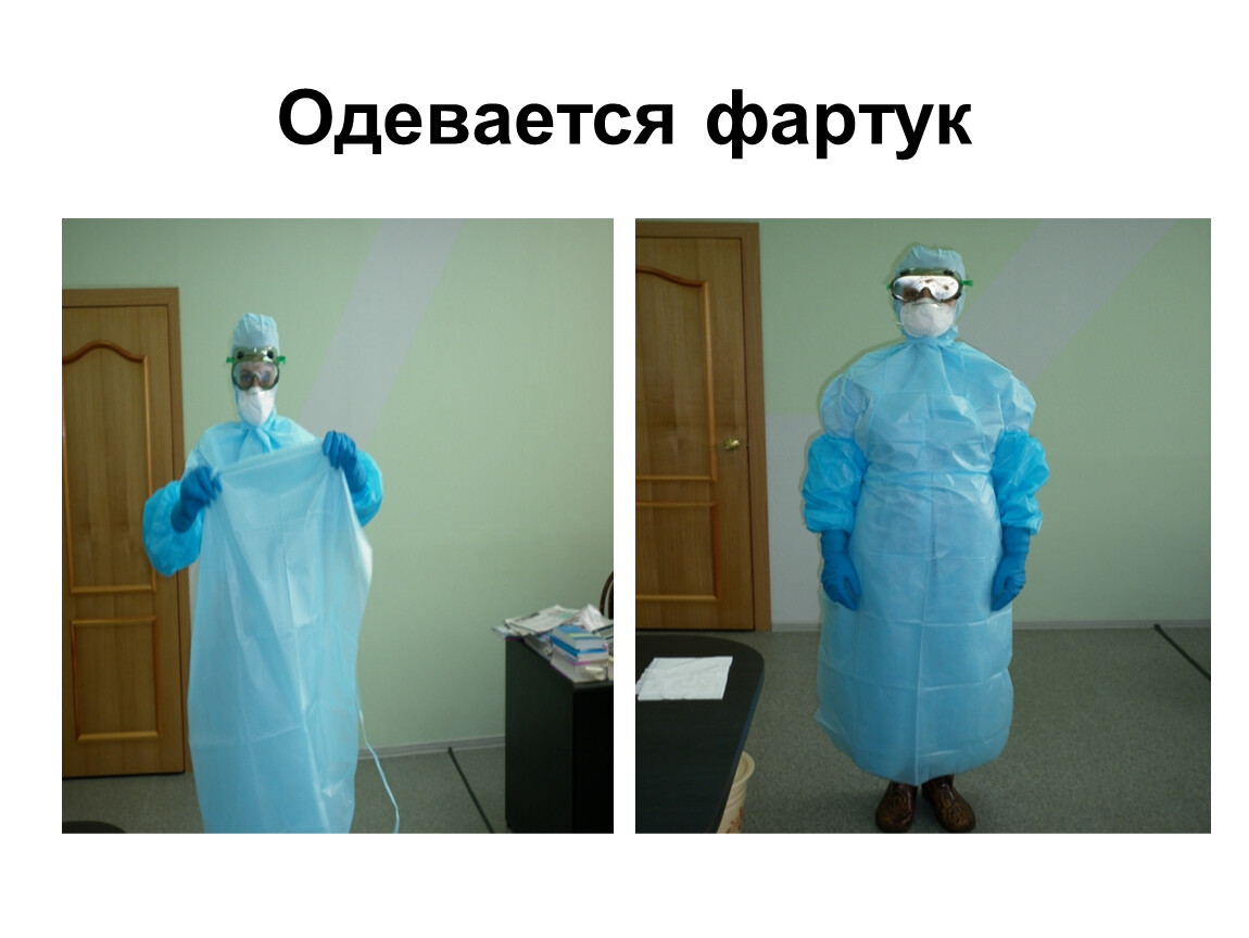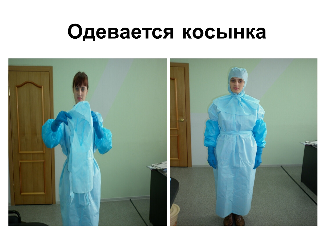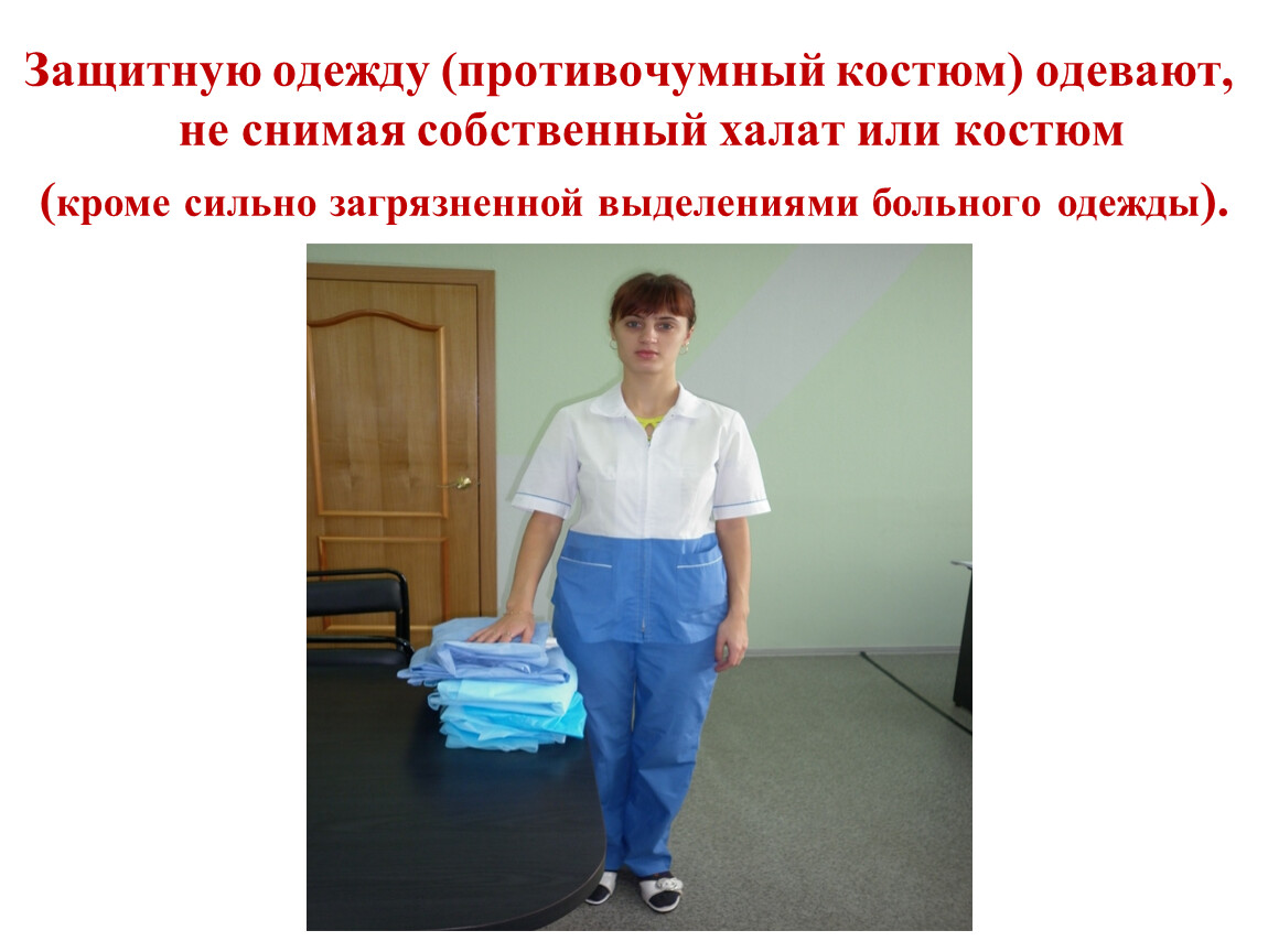 Защитную одежду (противочумный костюм) одевают, не снимая собственный халат или костюм