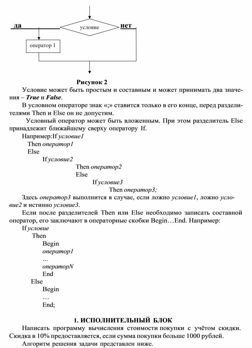 Условный оператор без разделителя Else в блок–схеме алгоритма пред- ставлен на рисунке 2.