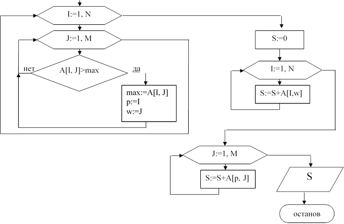 S:=0; For I:=1 to n do For J:=1 to m do S:=S+A[I, J]; |