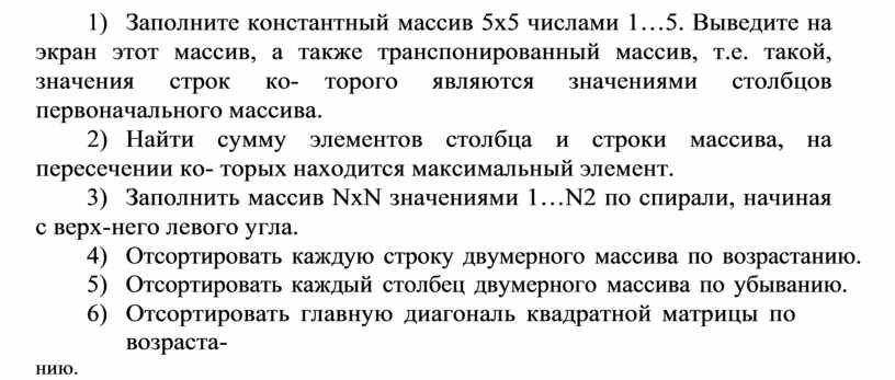 1.2 Научиться решать типовые задачи с двумерными массивами.