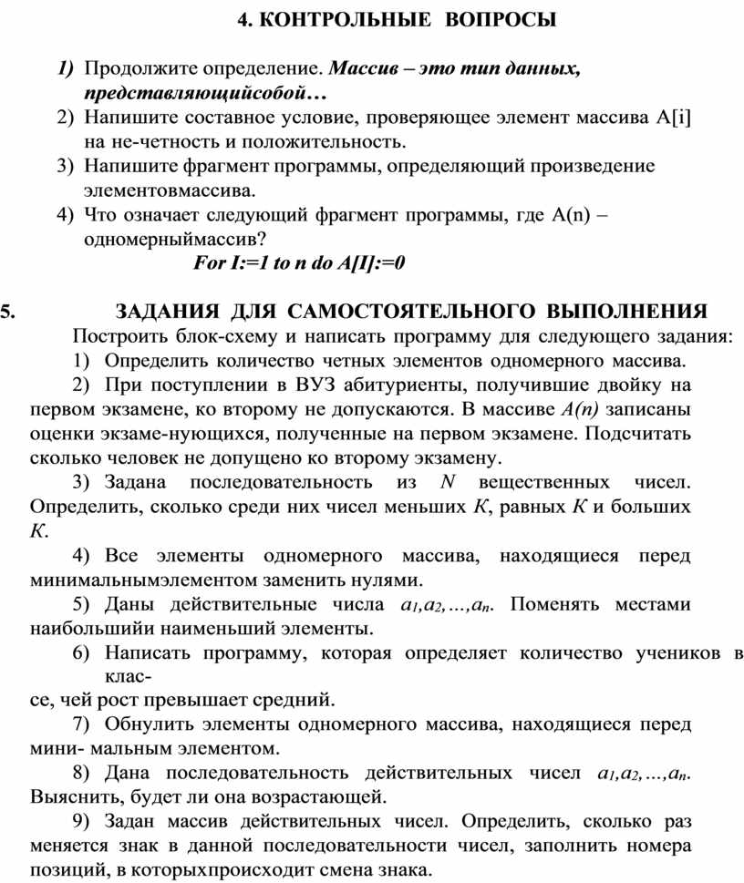 4) Что означает следующий фрагмент программы, где А(n) – одномерный массив?
