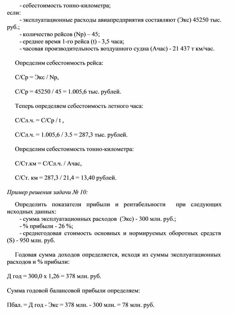 - эксплуатационные расходы авиапредприятия составляют (Экс) 45250 тыс. руб.;