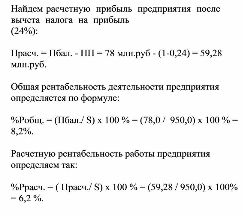 Найдем расчетную прибыль предприятия после вычета налога на прибыль