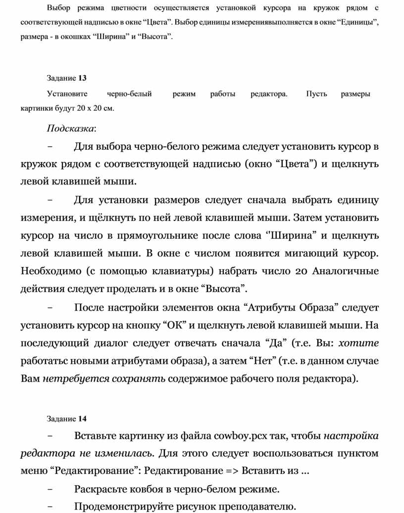 - Вставьте картинку из файла cowboy.pcx так, чтобы настройка редактора не изменилась. Для этого следует воспользоваться пунктом меню “Редактирование”: Редактирование => Вставить из ...