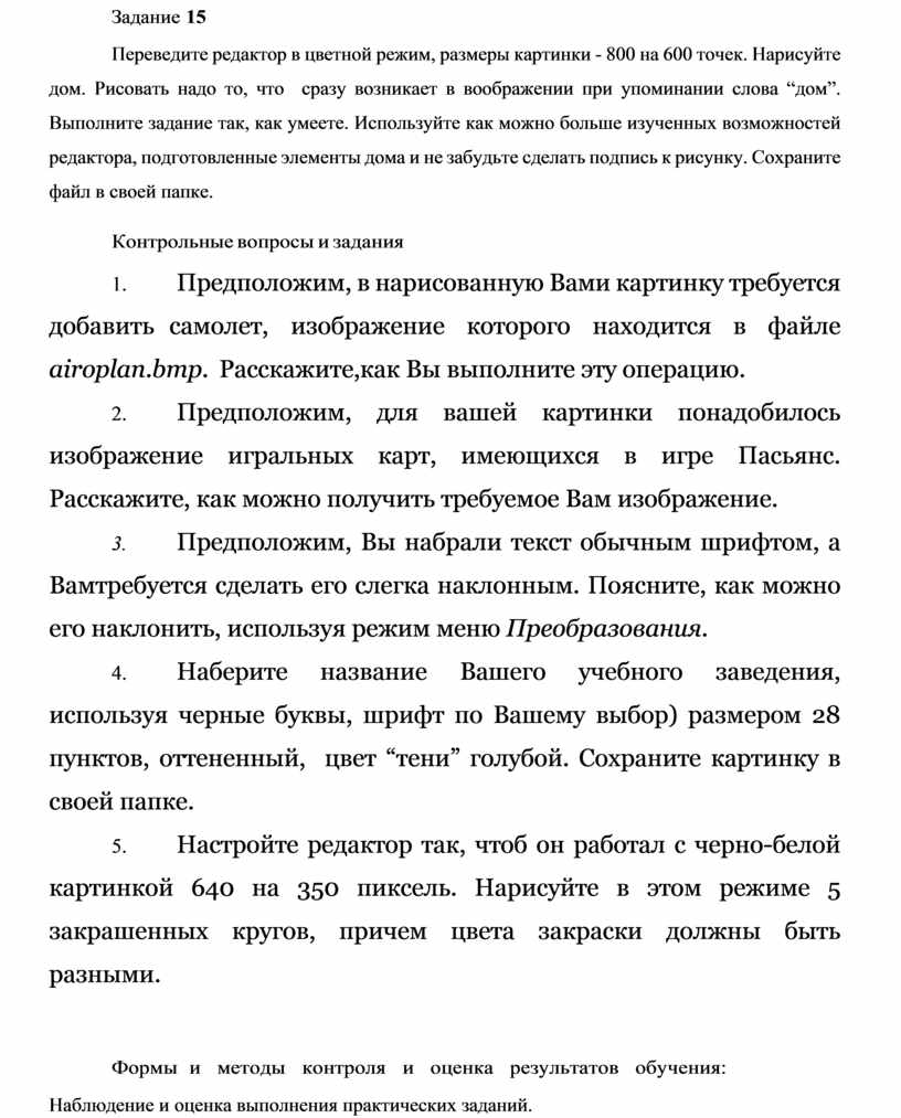 Материально-техническое и информационное обеспечение: персональные компьютеры, компьютерный тест по работе с графическим редактором, [ДИ 3].