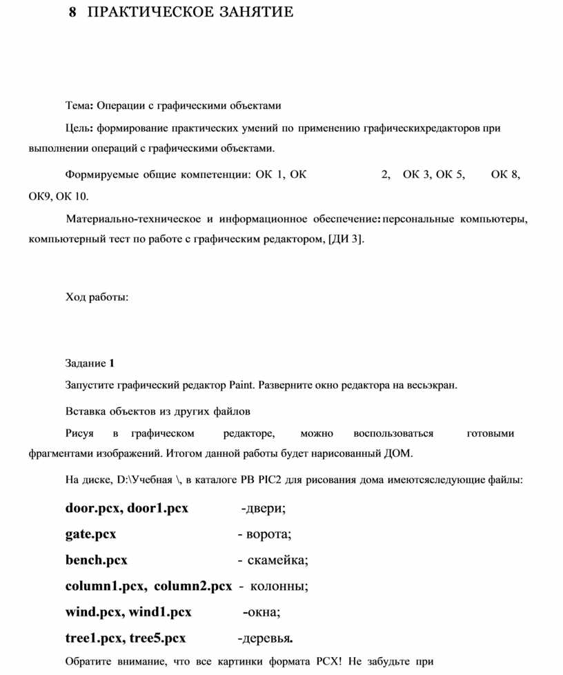 Цель: формирование практических умений по применению графических редакторов при выполнении операций с графическими объектами.