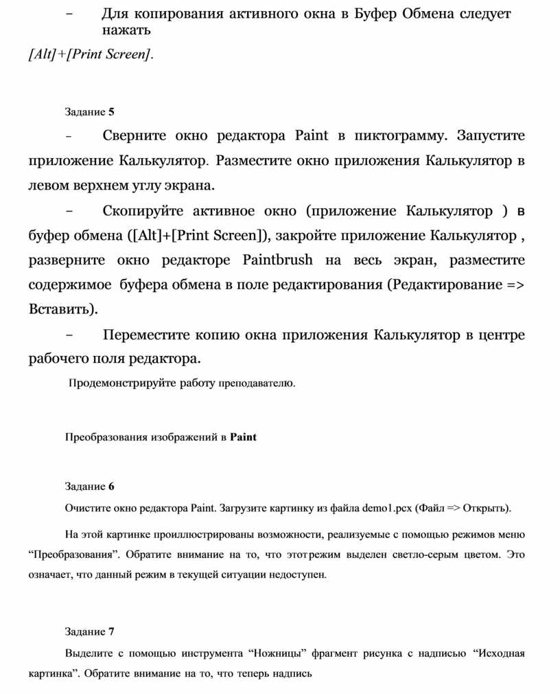 - Для копирования экрана в Буфер Обмена следует нажать клавишу