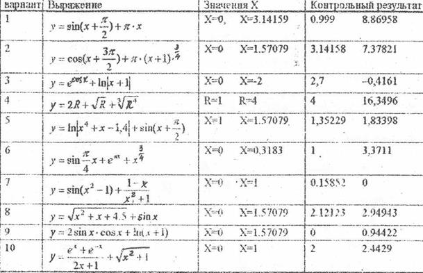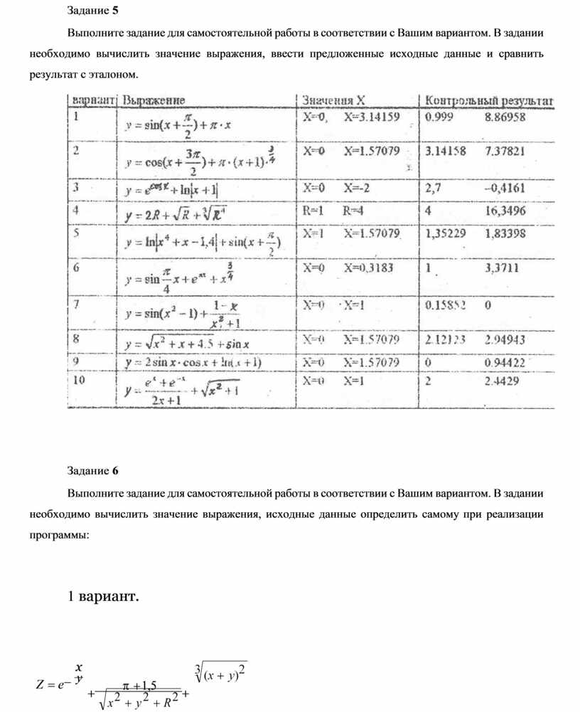 Выполните задание для самостоятельной работы в соответствии с Вашим вариантом. В задании необходимо вычислить значение выражения, ввести предложенные исходные данные и сравнить результат с эталоном.