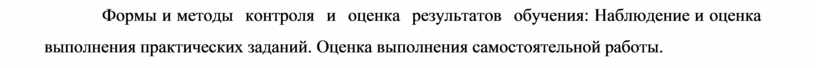 Формы и методы контроля и оценка результатов обучения: Наблюдение и оценка выполнения практических заданий. Оценка выполнения самостоятельной работы.