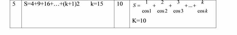 S = 1 + 2 + 3 + ... + k cos1 cos 2 cos 3 cos k K=10 |