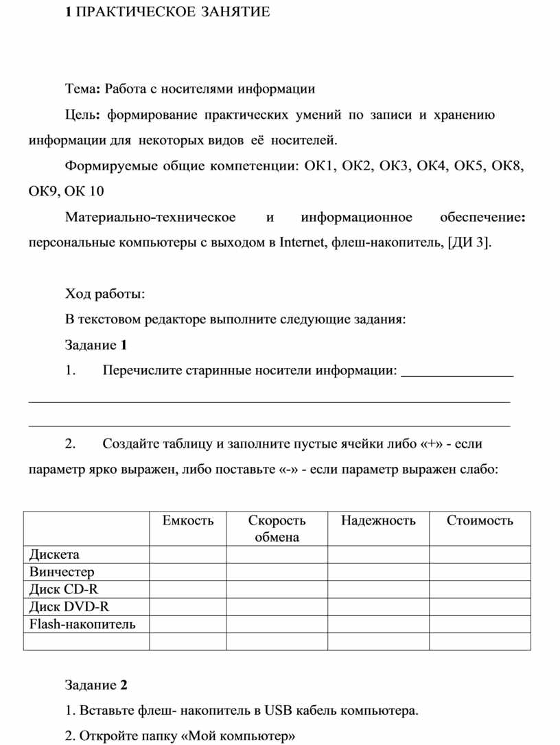 Цель: формирование практических умений по записи и хранению информации для некоторых видов её носителей.