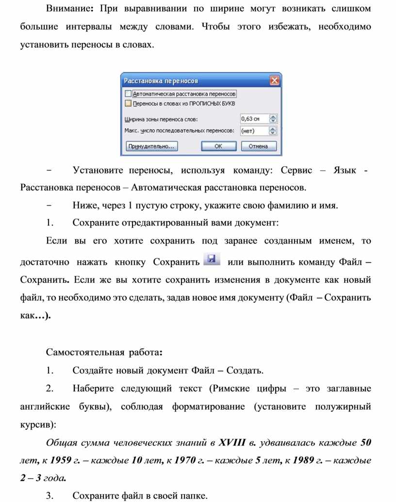 Внимание: При выравнивании по ширине могут возникать слишком большие интервалы между словами. Чтобы этого избежать, необходимо установить переносы в словах.
