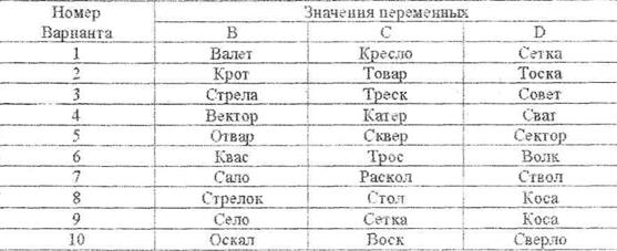 1. Выполнить преобразования и печать слов: