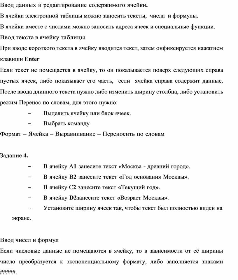 - В ячейку В2 занесите текст «Год основания Москвы».
