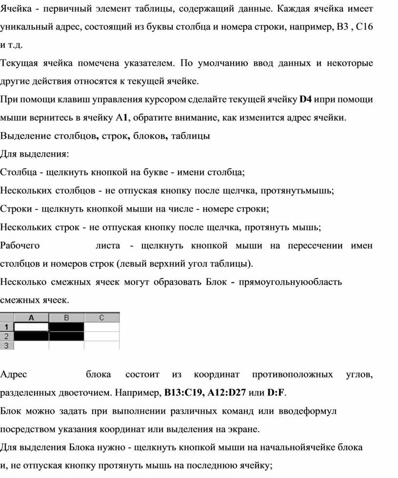 Несколько смежных ячеек могут образовать Блок - прямоугольную область смежных ячеек.