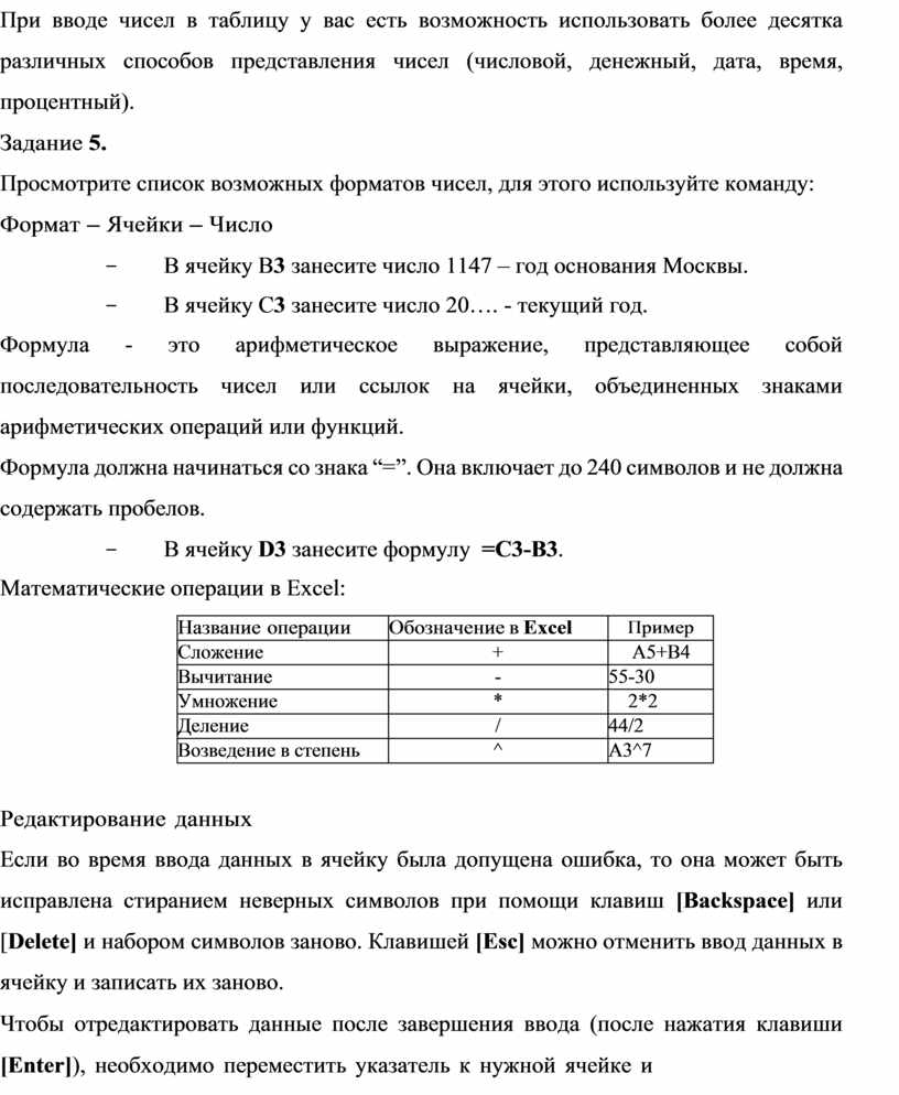 Тема: Ввод чисел, формул и текста. Использование стандартных функций
