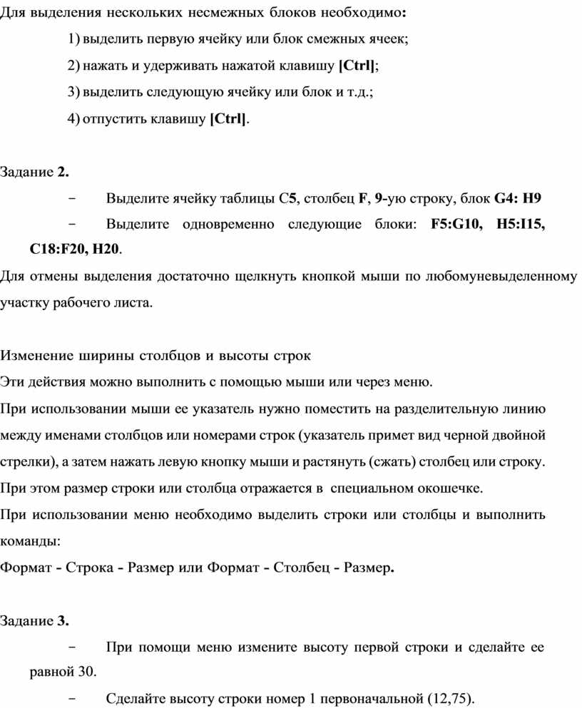 При использовании мыши ее указатель нужно поместить на разделительную линию между именами столбцов или номерами строк (указатель примет вид черной двойной стрелки), а затем нажать левую кнопку мыши и растянуть (сжать) столбец или строку.