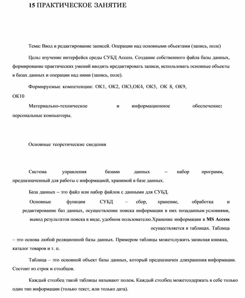 Тема: Ввод и редактирование записей. Операции над основными объектами (запись, поле)