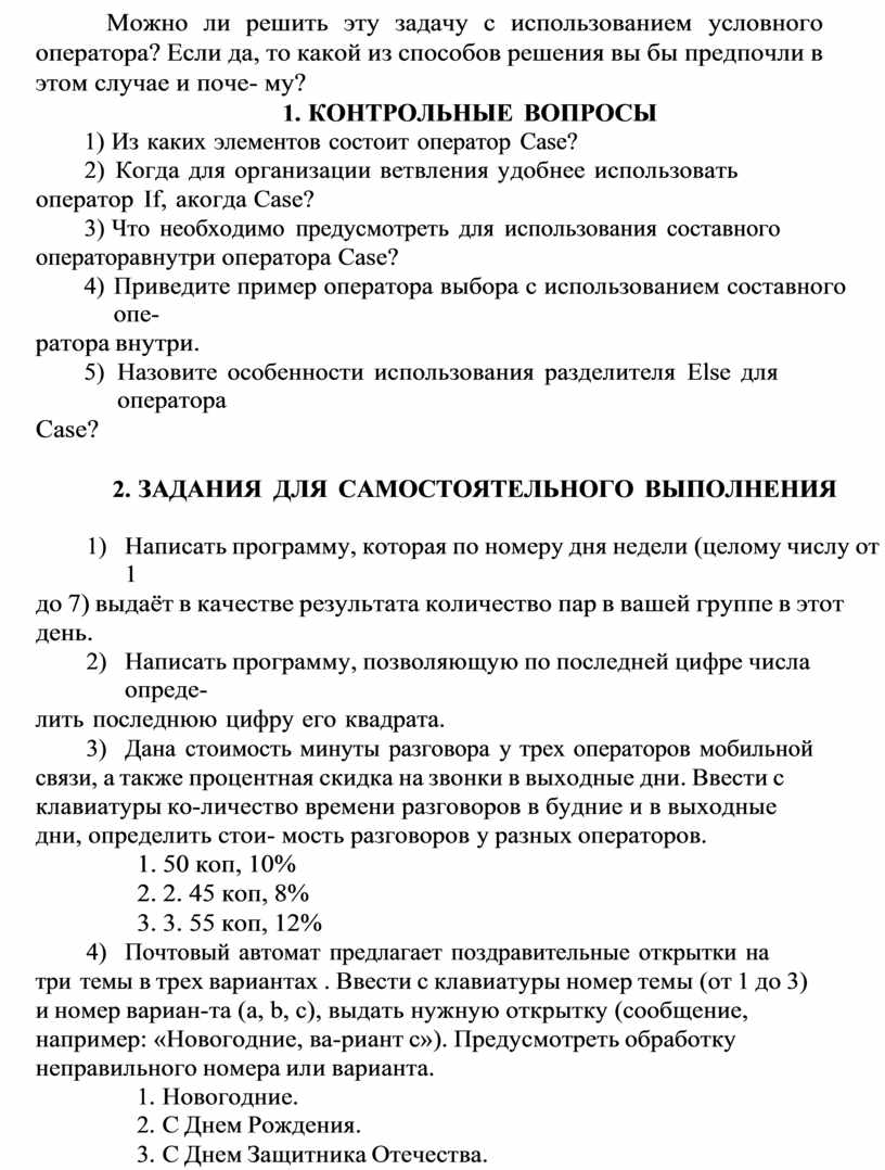 Можно ли решить эту задачу с использованием условного оператора? Если да, то какой из способов решения вы бы предпочли в этом случае и поче- му?