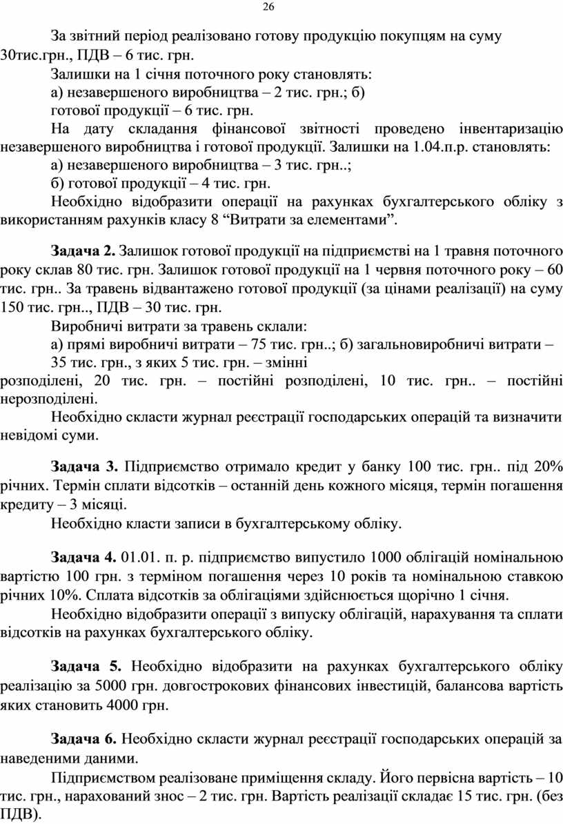Задача 2. Залишок готової продукції на підприємстві на 1 травня поточного року склав 80 тис. грн. Залишок готової продукції на 1 червня поточного року – 60 тис. грн.. За травень відвантажено готової продукції (за цінами реалізації) на суму 150 тис. грн.., ПДВ – 30 тис. грн.