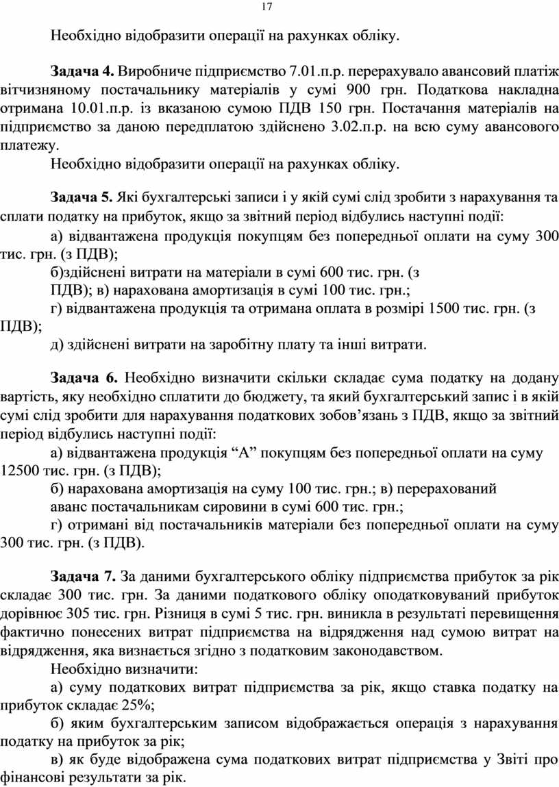 Задача 3. Виробниче підприємство 6.01.п.р. отримало від постачальників сировину на 1800 грн. з ПДВ і податкову накладну на цю партію товару. Оплату за сировину здійснено 17.01.п.р.