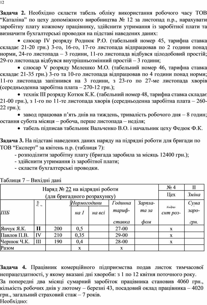 Задача 4. Працівник комерційного підприємства подав листок тимчасової непрацездатності, у якому вказані дні хвороби: з 1 по 12 квітня поточного року.