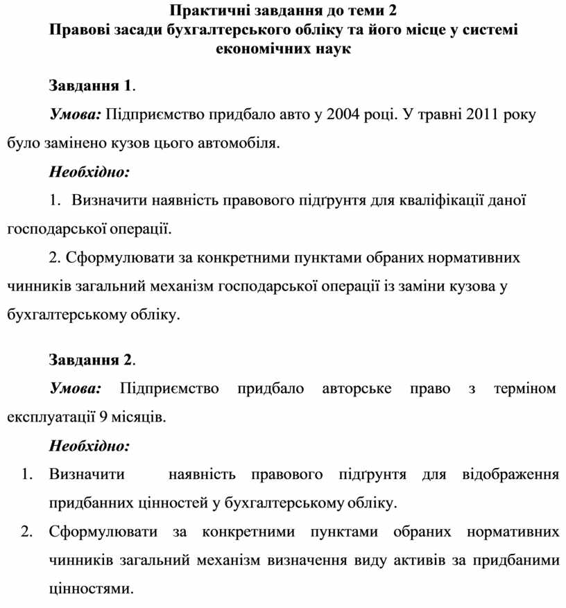1. Визначити наявність правового підґрунтя для відображення придбанних цінностей у бухгалтерському обліку.