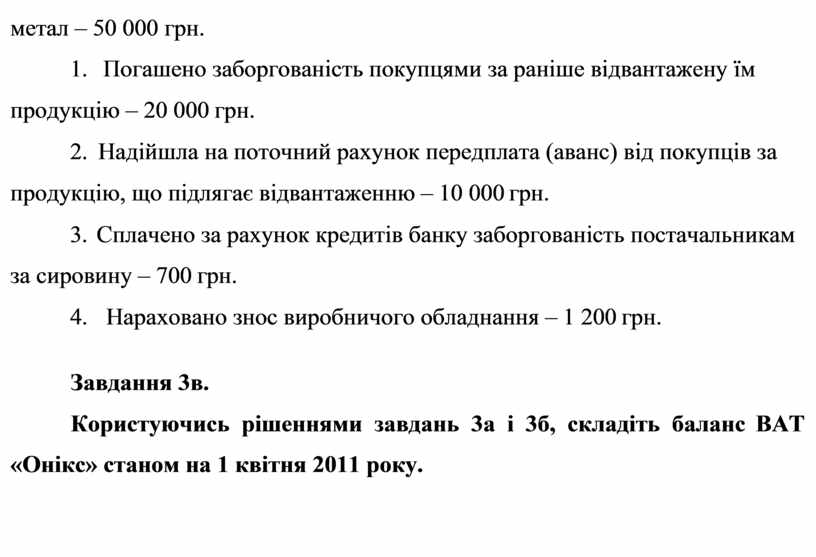 Користуючись рішеннями завдань 3а і 3б, складіть баланс ВАТ