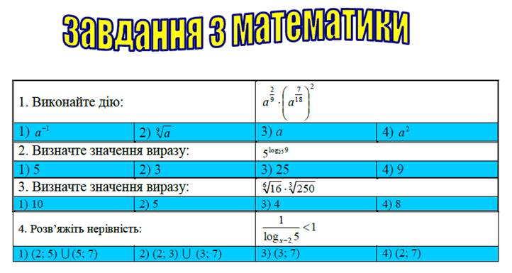 2. Наберіть умови завдань з математики та варіанти відповідей до них.