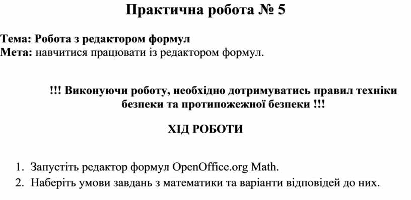 Мета: навчитися працювати із редактором формул.