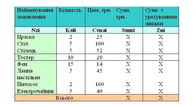 2. Скласти довідку по магазину про заявки на продаж побутових товарів за безготівковим розрахунком на підставі наведених даних: