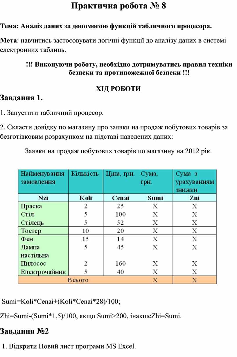 Мета: навчитись застосовувати логічні функції до аналізу даних в системі електронних таблиць.