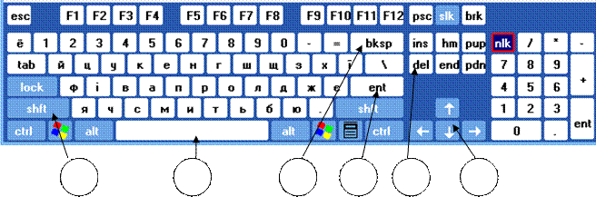 - набути практичних навичок у використанні основних клавіш клавіатури ПЕОМ