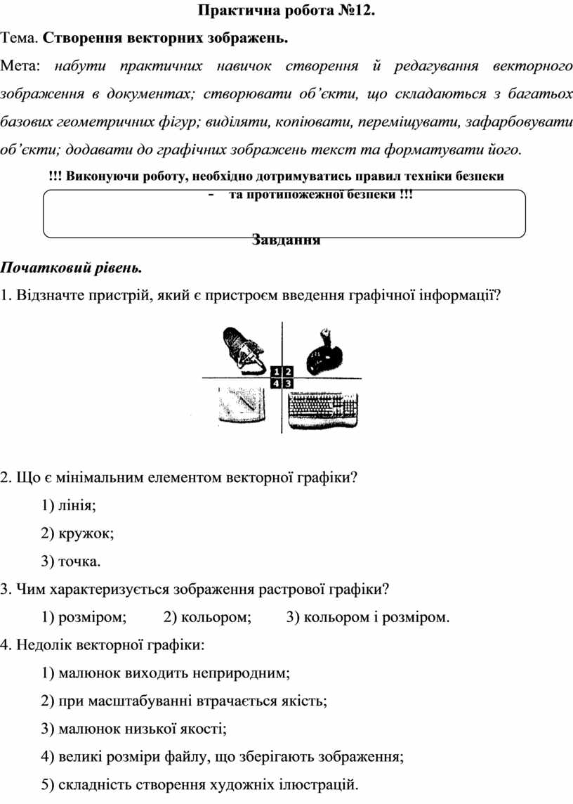 !!! Виконуючи роботу, необхідно дотримуватись правил техніки безпеки