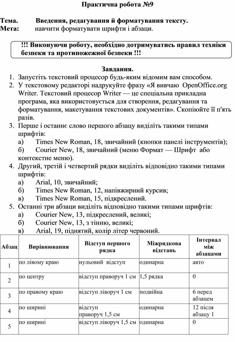 Мета: навчити форматувати шрифти і абзаци.