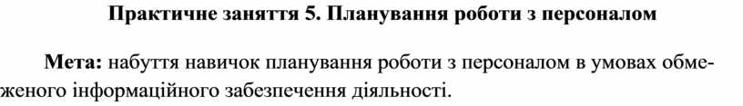 Мета: набуття навичок планування роботи з персоналом в умовах обме-женого інформаційного забезпечення діяльності.