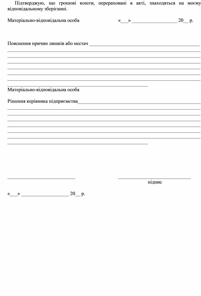 Матеріально-відповідальна особа «___» __________________ 20__ р.
