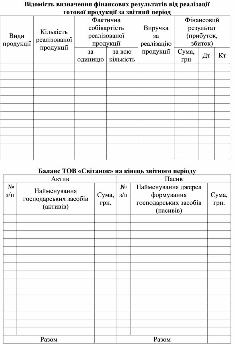 Баланс ТОВ «Світанок» на кінець звітного періоду
