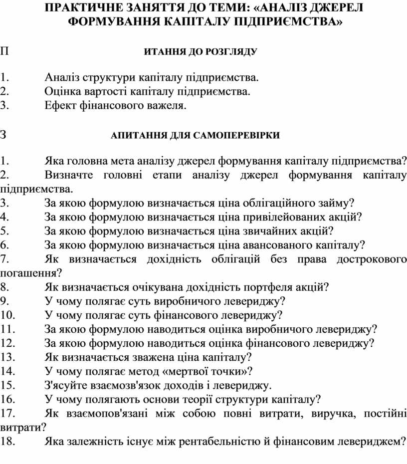 1. Яка головна мета аналізу джерел формування капіталу підприємства?