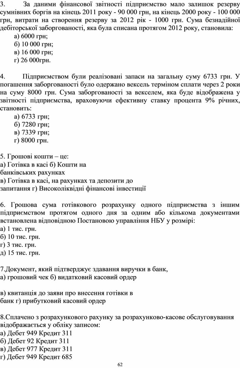 Практичне заняття Облік грошових коштів і дебіторської заборгованості