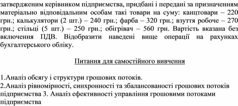 2.Аналіз рівномірності, синхронності та збалансованості грошових потоків підприємства 3. Аналіз ефективності управління грошовими потоками підприємства