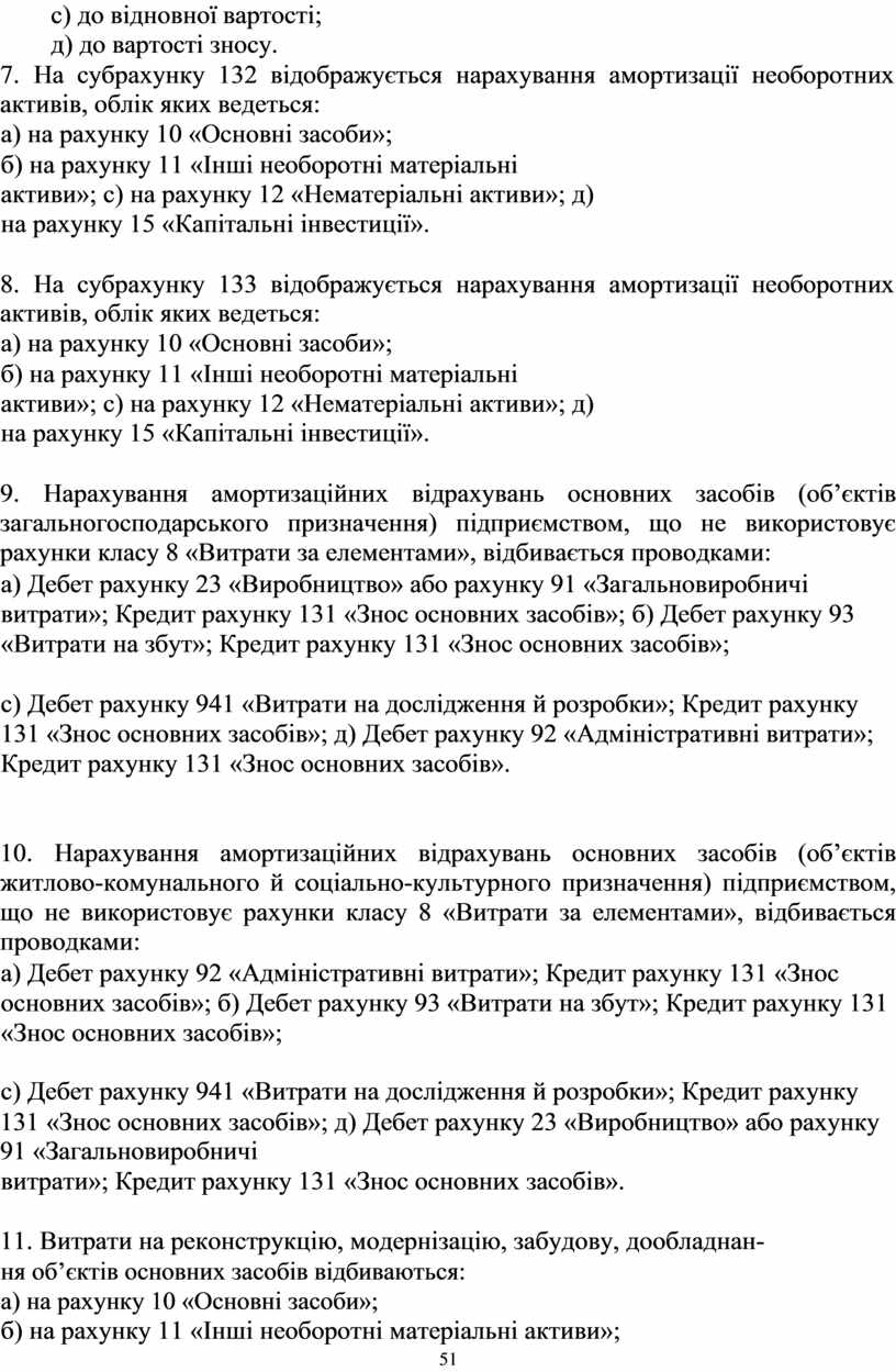 131 «Знос основних засобів»; д) Дебет рахунку 23 «Виробництво» або рахунку 91 «Загальновиробничі