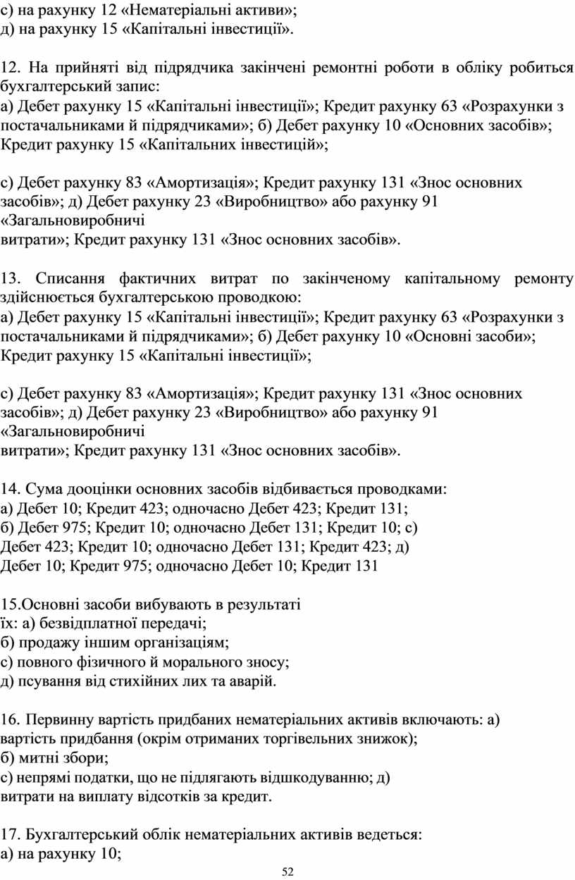 с) на рахунку 12 «Нематеріальні активи»; д) на рахунку 15 «Капітальні інвестиції».