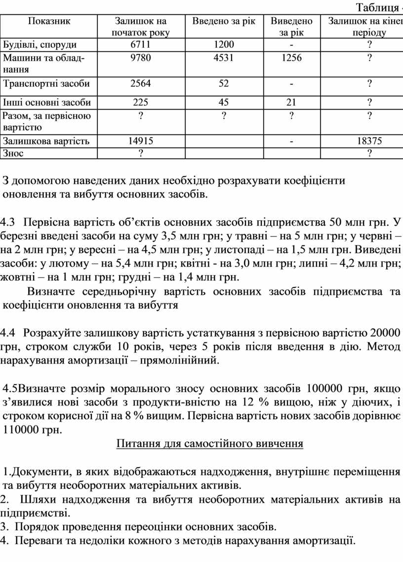 4.2 Заповнити таблицю та визначити показники стану основних засобів, на основі наведених даних (табл.4.2).